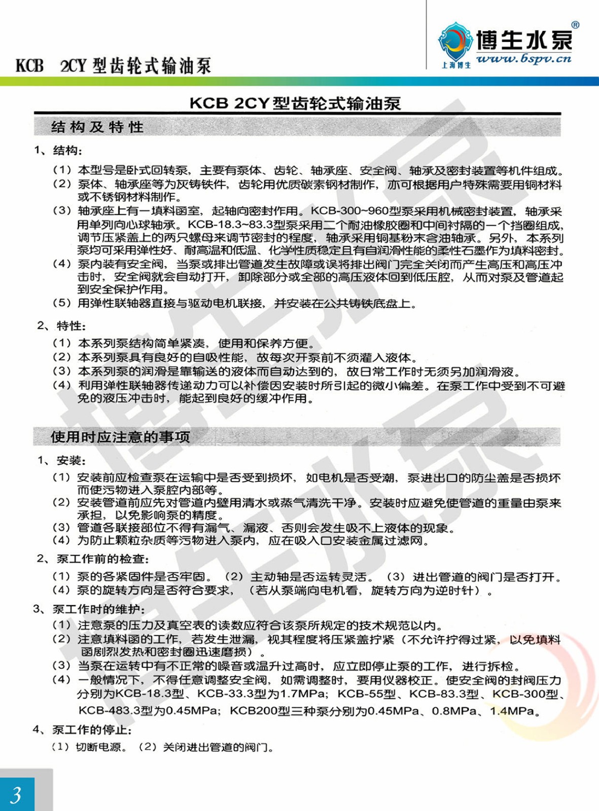 KCB、2CY型齒輪油泵